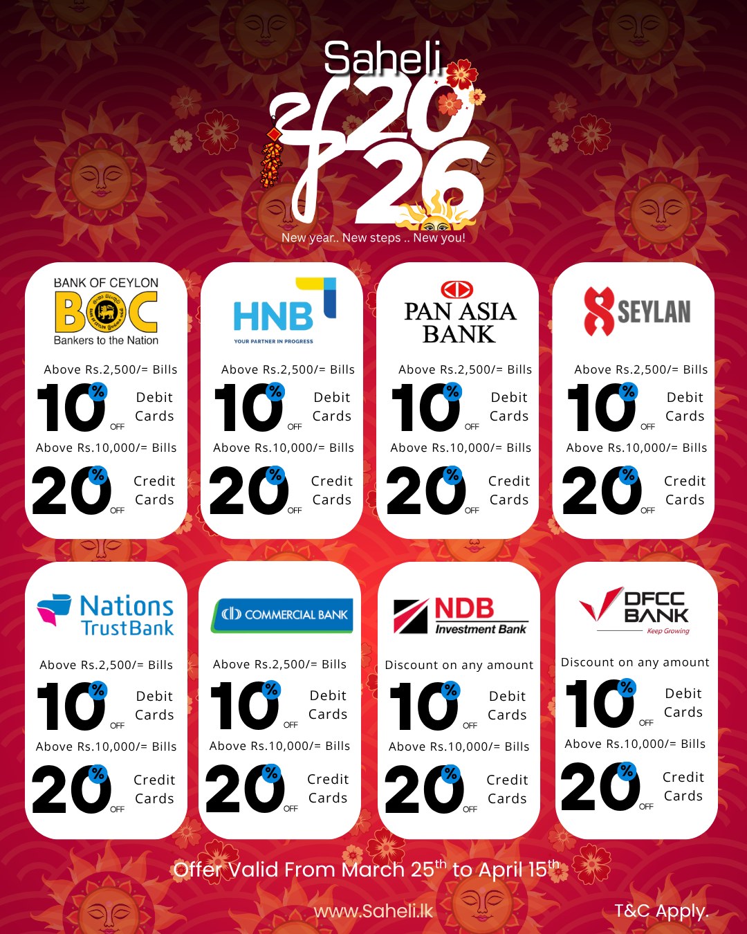 Celebrate the New Year with special savings at Saheli! Enjoy exclusive discounts when you pay using selected bank cards.
